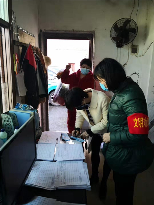 在六角亭社区,郭芳、沈日麒等与小区物业一道,在责任家属区开展摸排、消毒和值守。