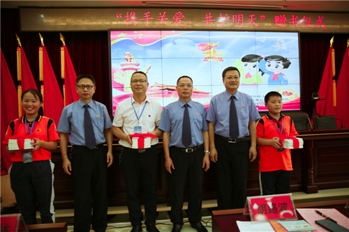 市检察院党组成员、副检察长陈红卫,检察委员会专职委员胡胜辉以及苏仙区检察院党组副书记、副检察长全洪根给学生代表赠送法治书籍。