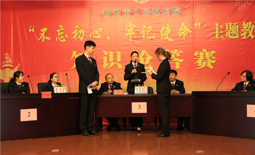 11月14日,市检察院举行“不忘初心、牢记使命”主题教育知识抢答赛,营造浓厚学习氛围,检验学习成果,让全体党员干警做到理论学习有收获、思想政治受洗礼。
